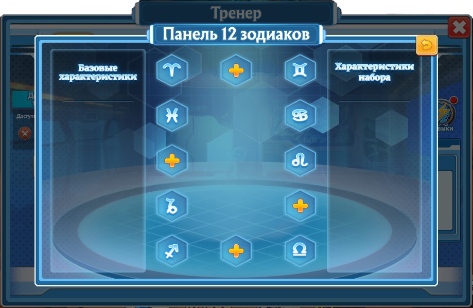 Для того, чтобы перейти к новому функционалу отройте меню тренера и выберете «12 зодиаков».
